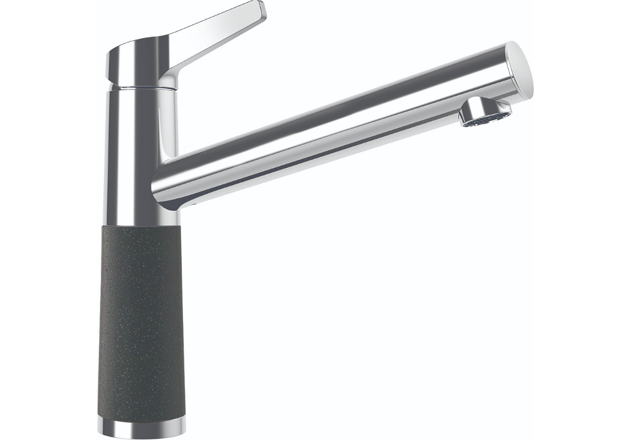 Компактная мойка для современной минималистской кухни — округлая в плане, с элегантной прямоугольной панелью перелива. На площадке под смеситель можно также разместить дозатор моющего средства или кран для питьевой воды.